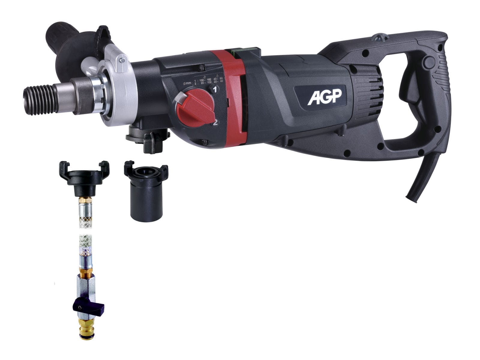 Vrtací motor disponuje 2-rychlostním výkonným 1800 W motorem s ochranou proti přetížení a tepelnou ochranou, navíc má funkci „soft start“ pro šetrný začátek vrtání. Skříň motoru, převodovka a převodová deska jsou vyrobeny z hořčíkové slitiny pro minimální hmotnost a maximální pevnost. AGP DDC5 je vybavena robustní dvoustupňovou převodovkou s mechanickou bezpečnostní spojkou, která chrání obsluhu i stroj při zaseknutí vrtáku.