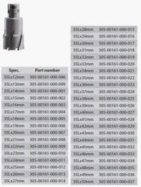 Dostupné průměry jádrových vrtáků: k dispozici od průměrů 12 mm až po 50 mm (vždy po 1 mm, viz. tabulka)